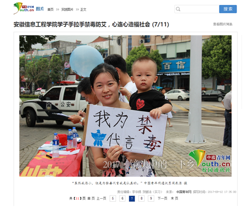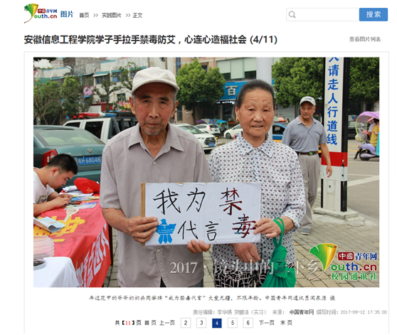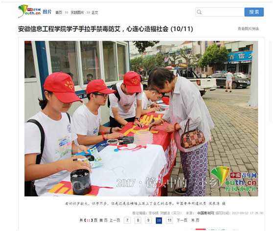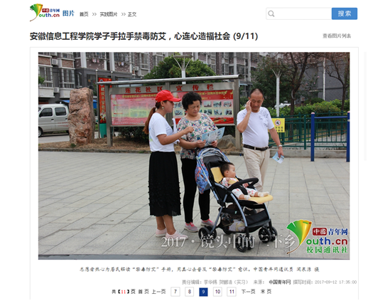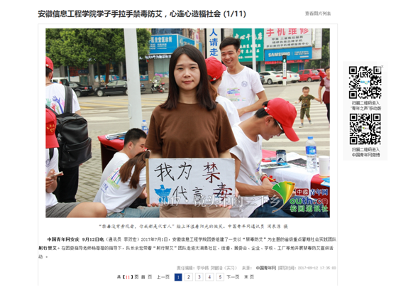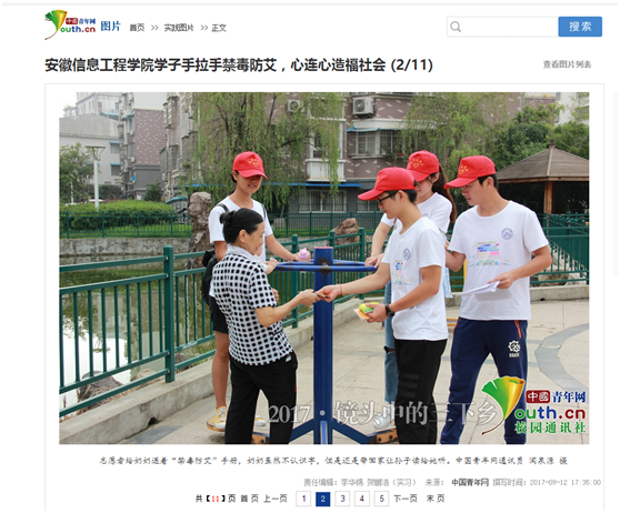 【中国青年网】 9月12日 安徽信息工程学院学子手拉手禁毒防艾,心连心造福社会