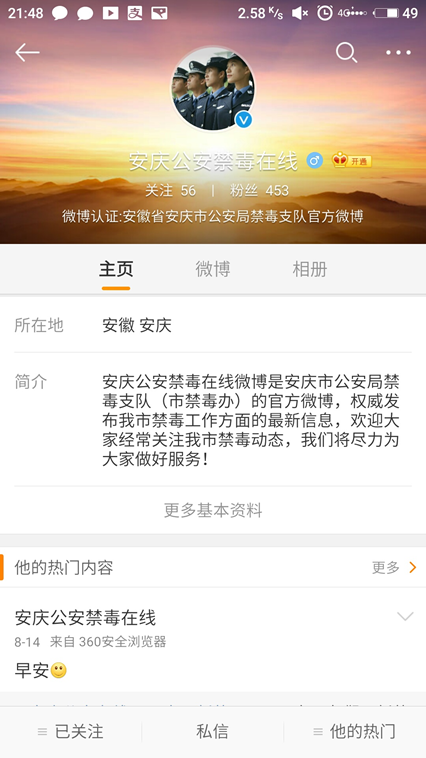 【安庆公安禁毒在线微博】相关报道