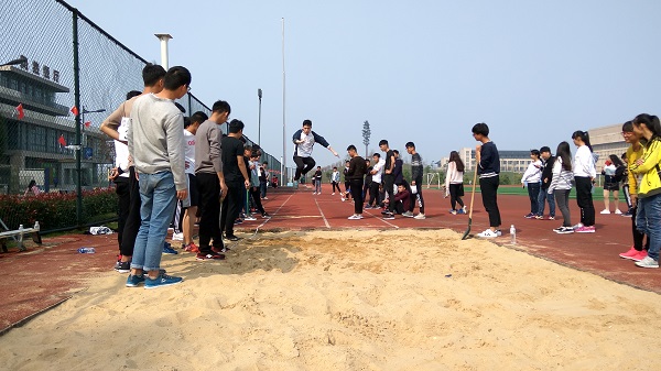 此次运动会由系学生会统筹组织,比赛分铅球、跳高、跳远、男女子100 米、200米、400米、 800米、 1500米等项目。下午13:00,各项目比赛正式开始。铅球赛场热火朝天,运动员们卯足了力气奋力一抛,一道闪亮的弧线划过,沉甸甸的铅球落在了沙坑里砸出一个个满怀激情的印记。