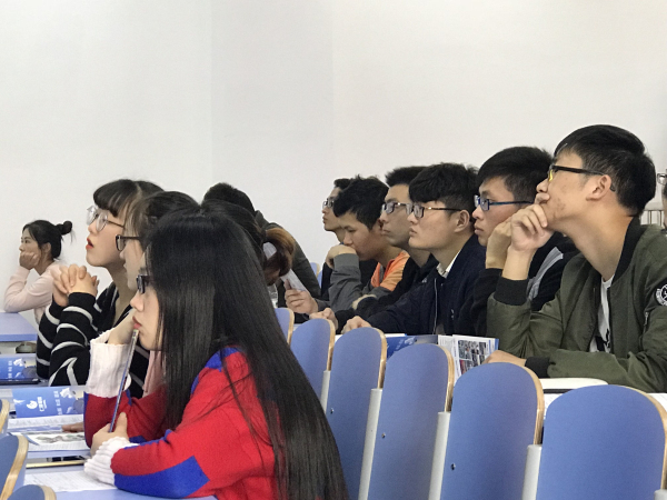 (学生认真聆听宣讲会)