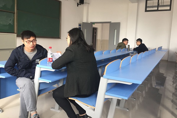 最后就是现场面试环节,同学们将早早准备好的简历递交给面试经理,并在简历的右上角写上了自己的期望工作地,依次进入紧张的面试环节。