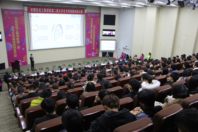 吴敏院长在大赛中讲话,他指出:在本届大赛的举办过程中,我院共产生了722件专利作品,其中发明237件,实用新型307件,外观设计178件。从2014年的5件专利到2017年的722件,仅仅用了三年的时间,我院专利工作取得了“爆发式”、“突破性”的增长。这些优异的成绩充分说明:专利创新已深入人心,在学院拥有了良好的基础,正逐渐成为学院创新创业教育改革的新亮点。全校所有年级和专业都参与了这项活动。我院已组织参加了三届芜湖大学生专利创新大赛,共获得91个奖项,其中获特殊奖和一等奖8个。特别是在刚刚结束的芜湖市第六届大学生专利大赛初赛和复赛中,我院的参赛作品和晋级复赛作品仍稳居芜湖市12所高校第一。近三年来,我院申报的各类专利有1161件获得国家知识产权局的受理,已获授权305件,在省内同类高校中名列前茅,“专利热”、“创新热”在学院落地生根开花结果,体现了全院上下对应用型人才培养的深刻理解与生动实践。