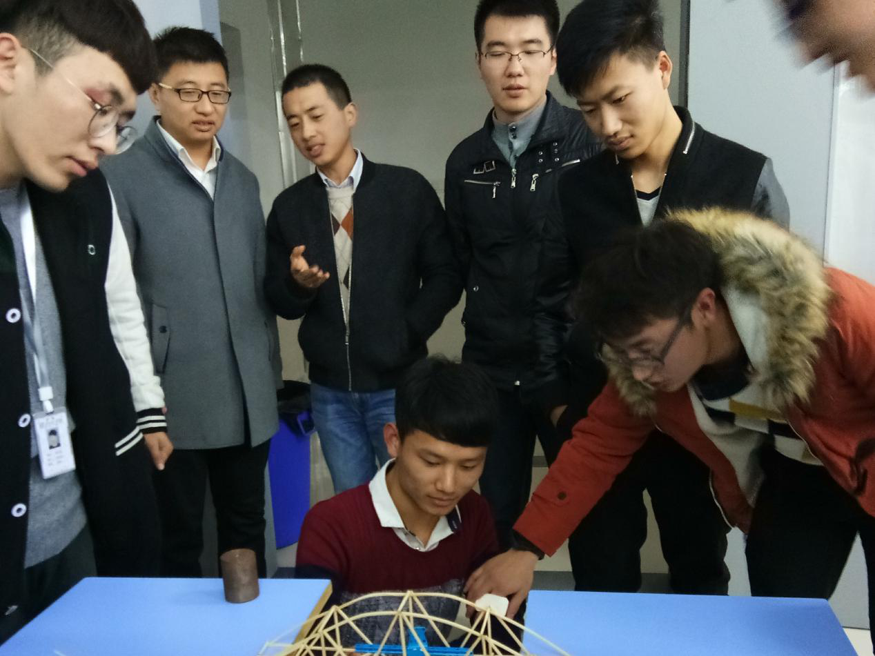 细木条,轻桥梁,承载多少创意的重量;三个人,齐心力,碰撞多少智慧的火花。虽轻巧而普通,亦坚挺而美妙。本次木制桥梁静压承重比赛的举办,充分发掘了同学们的兴趣爱好,拓展了同学们的专业视野,培养了学生科技创新精神与实践能力。