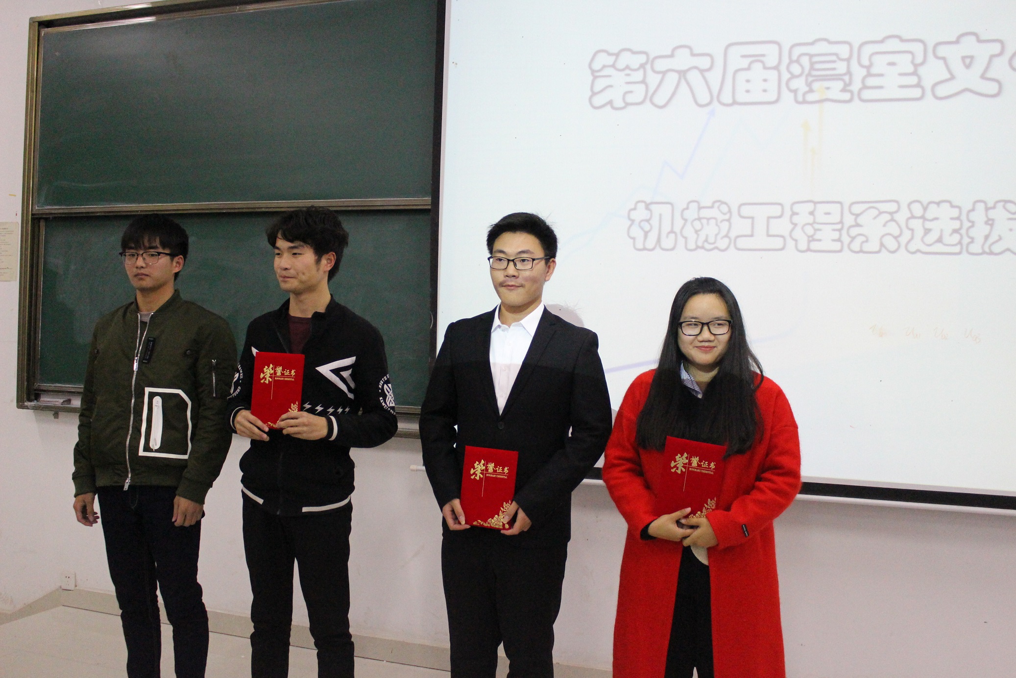 本次选拔赛分为三大部分:寝室设计汇报大赛,寝室卫生评比大赛及寝室话剧表演大赛。其中,寝室设计汇报大赛于11月16日19:00在A1N106举行,机械工程系团总支书记王淼昕、辅导员苗思忠以及学生会主席团成员担任评委。此次比赛共有九支参赛队,每个参赛团队都别出心裁的展示了独特的室友情和多样的寝室文化。在每支参赛队进行ppt展示之后,王淼昕老师做了点评指导并给获奖寝室颁发证书。