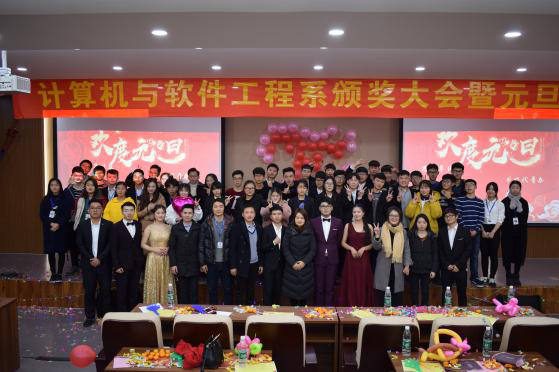 本网讯 回首走过的一年,我们充满收获;展望新的征途,我们踌躇满志。为表彰优秀学生,庆祝元旦的到来,12月26日晚7点,计算机与软件工程系颁奖大会暨元旦晚会在文津校区东二五楼报告厅隆重举行。计算机与软件工程系主任助理戴平、艺术设计系学工秘书兼党总支副书记叶克军、计算机与软件工程系学工秘书张齐云、教学秘书万家山及系部师生代表出席了晚会。