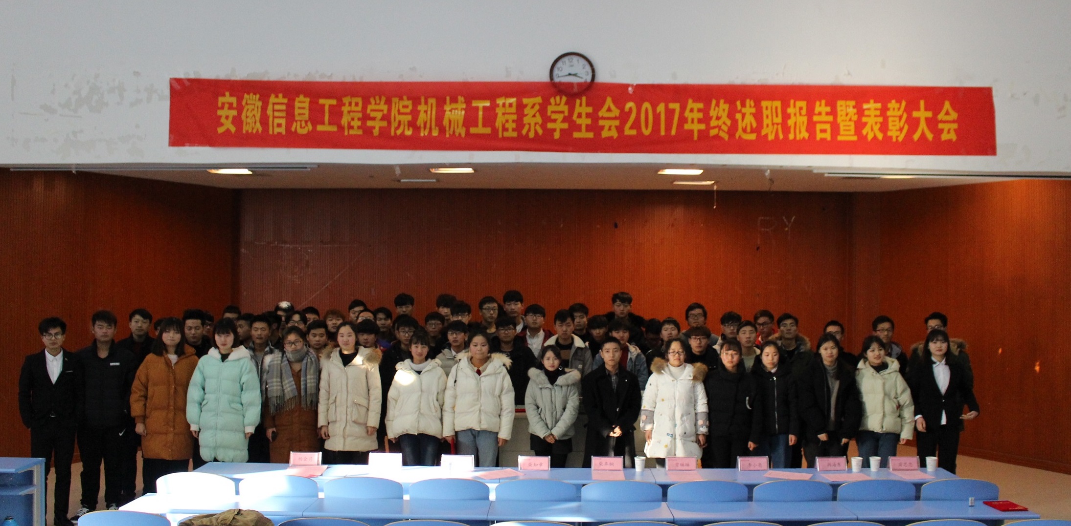 本网讯 为表彰先进,树立学生干部榜样,提高学生会成员的工作积极性和主动性,2018年1月10日下午,我院机械工程系学生会于新芜校区A1W101教室举行2017年度工作表彰大会。出席本次大会的有机械工程系主任柴阜桐、副主任柴知章,团总支书记、学生会指导老师王淼昕以及机械工程系各年级、专业辅导员老师。大会由周磊、卢雪梅主持。