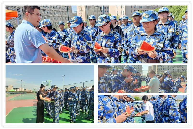 军训场上,烈日炎炎,暑气未减,电气与电子工程学院2025级学生军训如火如荼地进行着。9月15日上午,电气与电子工程学院开展军训慰问活动,学院全体院领导、学工秘书、新生辅导员前往训练场,为烈日下坚持训练的同学们送去清甜可口的西瓜,在炎炎酷暑中带来一丝清凉与甘甜。