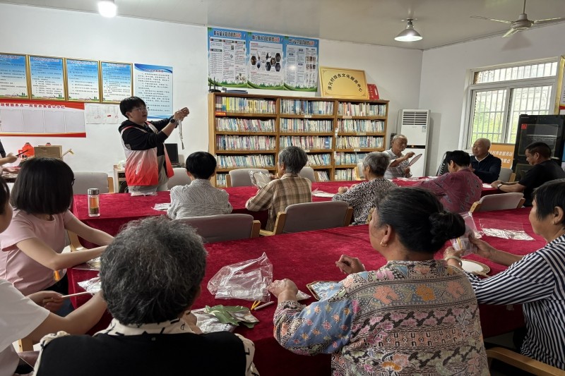 本网讯 为推动非遗文化融入乡村生活,发挥专业优势助力乡村振兴,9月25日上午,艺术设计学院党总支书记钱琳、学生第二党支部书记吴航带领志愿者赴津元村农家书屋开展“非遗宋锦珍珠扇制作”主题党日活动。为让非遗“活”在乡村,支部结合艺术设计专业特色,选定“宋锦珍珠扇”这一国家级非遗项目。宋锦素有“锦绣之冠”美誉,珍珠扇则是传统工艺与生活美学的结合,既符合村民审美,又便于手工体验。活动当天,志愿者们细致讲解了宋锦珍珠扇的历史渊源和制作方法,让居民们对这项非遗技艺有了立体认知。随后,大家拿起材料动手创作。志愿者们手把手指导村民操作,指导村民根据扇面图案搭配珍珠、亮片,仔细检查每一把扇子,帮他们调整扇骨松紧。不一会儿,一把把精美的珍珠扇就呈现眼前。(图为学生党员进行讲解)(图为制作现场)通过非遗手工体验,不仅让村民感受到了传统文化的魅力,也让志愿者在实践中深化了“全心全意为人民服务”的宗旨意识,将专业技能转化为服务乡村的实际行动。此次活动的成功开展,也为高校基层党建与专业实践结合提供了新路径——以党建