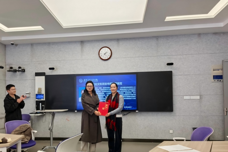 本网讯 为扎实推进学科建设,精准备战2026年度国家自然科学基金(以下简称“国自然”)项目申报,提升教师申报书撰写质量与立项成功率,11月19日,电气与电子工程学院特邀南京航空航天大学朱静副教授来校,作题为“学术论文和项目申报撰写规范”的专题讲座。活动在A3N403会议室举行,由学院科研秘书章琳志主持,全院教师参会学习。讲座伊始,学院副院长梁美玉为朱静颁发“电气与电子工程学院校外指导委员会专家”聘书。梁美玉在致辞中感谢了朱静副教授前期对学院科研工作的支持,相信此次受聘将为学院学科建设、科学研究,尤其是高层次科研项目申报工作注入专业智慧与强劲动力。(图为颁发聘书)在专题报告环节,朱静以国自然申报全流程为脉络,为在场教师带来了一场内容翔实、针对性强的精准指导。她开篇即强调,学术道德与规范是论文书写、项目申报的基石。随后,她结合自身多次成功主持国家自然科学基金项目的经验,对2026年国自然申报进行了前瞻性剖析。讲座中,她聚焦四大关键点展开详解:一是科学问题的凝练:如何从国家重大需求和学科发展前