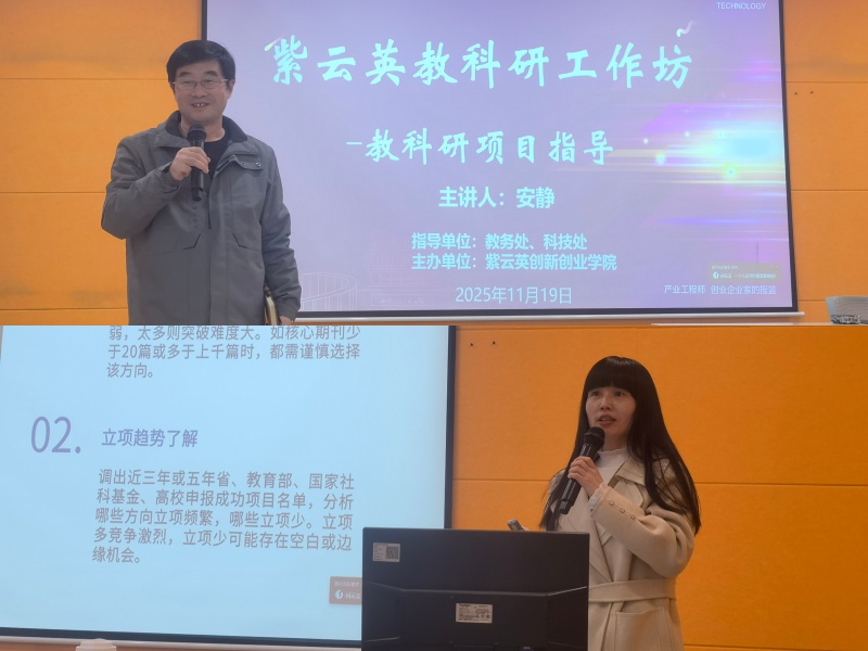 本网讯 为提升学院教师科研素养与项目申报能力,营造浓厚学术创新氛围,11月19日下午,紫云英创新创业学院在梧桐学创教室举办“教科研项目指导”专题工作坊。本次工作坊特邀南京邮电大学管理学院安静博士担任主讲嘉宾,全院教师参会学习。活动伊始,学院院长李菼详细介绍了安静博士。他强调,科研工作是学院内涵发展的核心支撑,也是教师个人职业成长的关键路径,学院高度重视教师科研能力培育,将持续搭建高水平学术交流与指导平台,鼓励全体教师珍惜学习机会,积极交流研讨,力争在科研项目申报中实现新突破。(图为讲座现场)专题分享环节,安静结合自身丰富科研经历及担任国家自然科学基金项目评审专家的经验,开展系统深入的指导。她围绕科研项目的选题论证、申报书撰写的关键技巧与常见问题等核心议题,进行了条分缕析的讲解。她的分享内容翔实、逻辑清晰,既有高屋建瓴的理论指导,又不乏具体生动的案例剖析,为在场教师提供了极具价值的实操指南。互动指导环节,她与教师们面对面深入交流,并针对学院教师正在培育或已具雏形的科研项目,进行了“一对一”