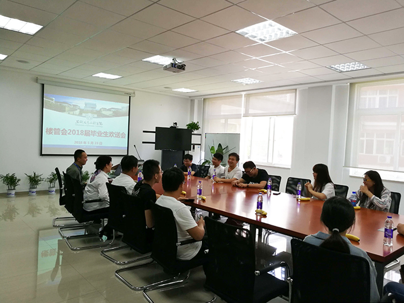 本网讯 斗转星移,花开花落,时光匆匆,转眼间,2014级的同学们就要毕业离开学校了。在这临别的时刻, 安徽信息工程学院学生楼栋管理委员会于2018年5月23日下午三点,在后勤处指导老师的指导和支持下,在文津校区东二218会议室举办了楼管会2018届毕业生欢送会暨交流会。参加本次会议的有后勤处陈璐老师,万明老师,新亚物业代表汪四龙,孙雪莲,即将毕业的大四学长代表,新芜校区和文津校区楼管会代表。(图为欢送会现场)会议伊始,万明老师介绍了与会人员,简单阐述了此次会议的目的和意义;并转达了后勤处领导的问候和希望。随后,楼管会的四位大四学生代表分别分享了自己在社团内的学习心得与工作经验,回顾着各自从大一进入楼管会,从委员到副会长,直到大四毕业,自己点点滴滴地成长与进步。学长们说:“在楼管会,日常工作让自己的能力得到锻炼与提升,增强了自己的责任心,同时加强了与部门人员的团结与凝聚力,这些对于今天的实习工作也有着不可忽视的作用”。(2014级学长分享学习心得与工作经验)此外,会上两校区各级成员代表也向