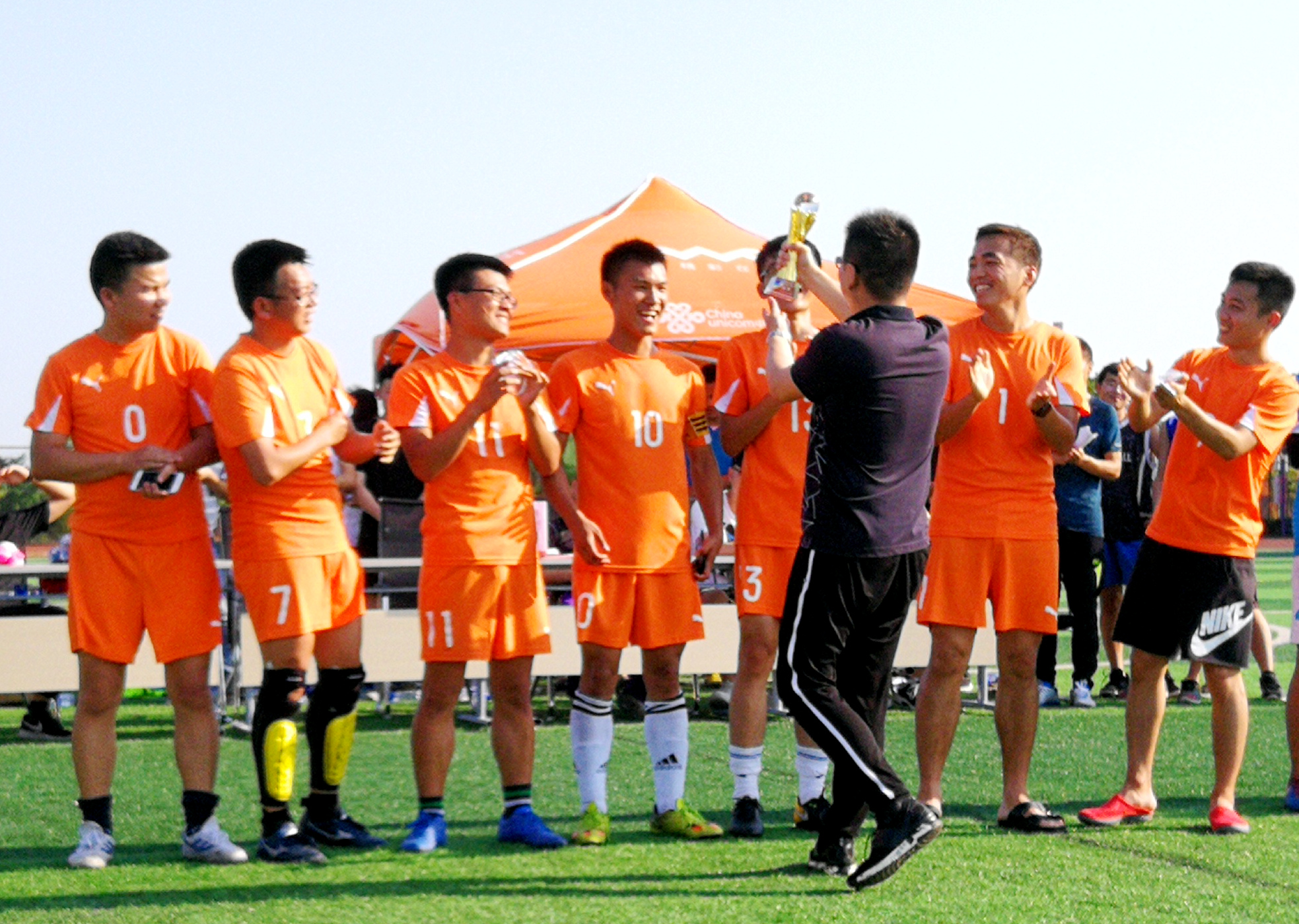 热火冲锋,始于足下。本周三下午,我校2018“吉诚-联通”杯五人制足球赛在历时一个月的角逐中,顺利落下帷幕。在决赛大战中,吉诚队以4:1大比分优势顺利摘得本次联赛第一名的桂冠,破风队夺得亚军,小猪佩奇队名列第三。(素培中心老师给获奖队颁奖)与此同时,由裁判组提名,经联赛组委会审议,获得本次联赛“最佳球员”称号的是来自管理工程学院1701班的吴锋同学;来自机械工程学院1504班的孙睿凭借22个进球数,荣登本届联赛“最佳射手”宝座。(比赛现场)(比赛现场)闭幕式于下午16:30准时开始,素培中心的老师们分别为获奖球队和队员颁奖并合影留念。 (全体合影)据统计,本次联赛共有17支球队参加,参赛选手200名,参赛人数和循环场次均创我校足球活动之最。本次活动另一亮点,即师生合并组队,不同专业组队,推动了学院间的联谊和师生间的交流,同时对校园体育文化氛围起到积极促进作用。(文/宁杰、周悦 图/黄乐 审/张军骑 )