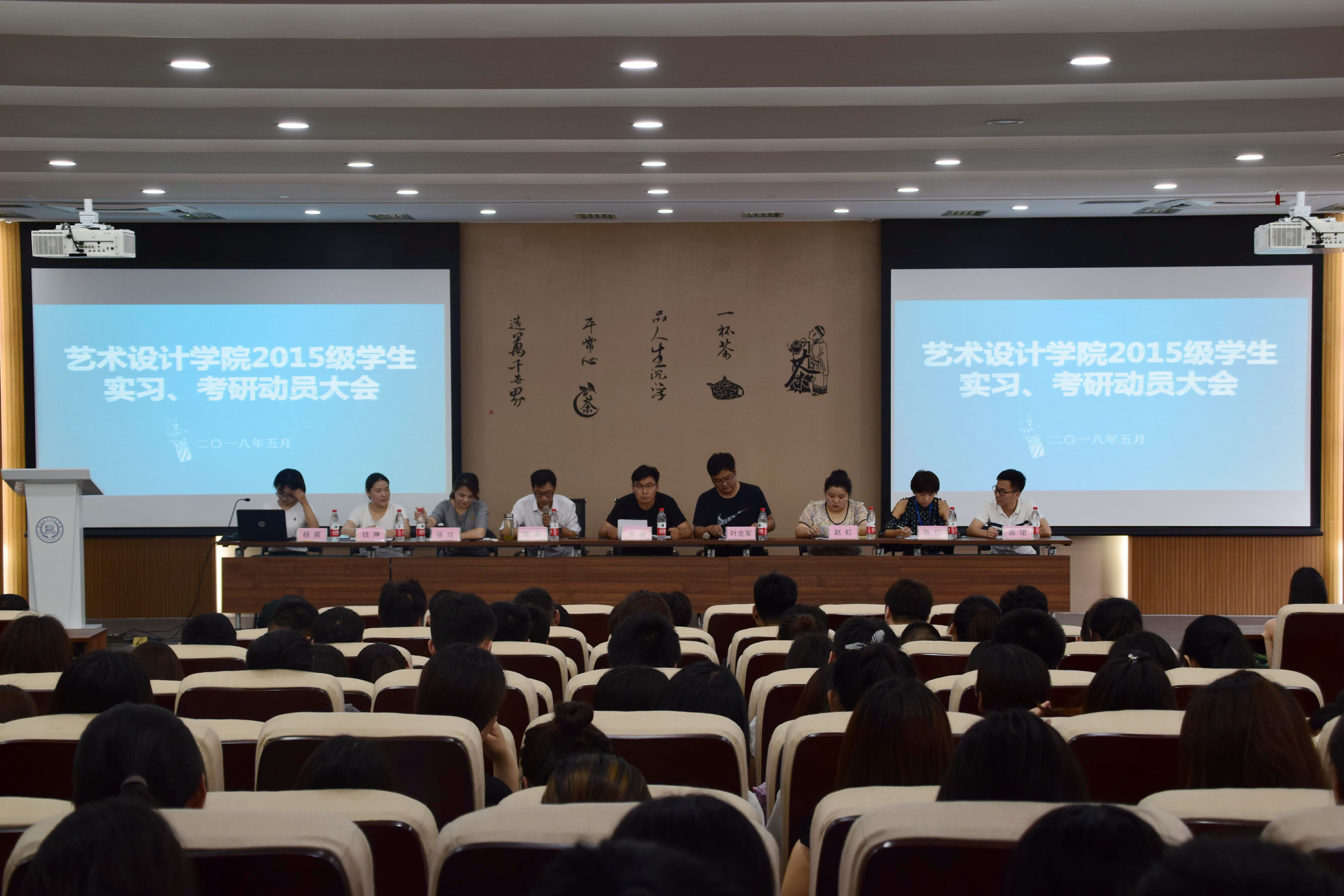 5月18日下午,艺术设计学院在东二五楼报告厅举行2015级学生实习、考研动员大会。学院副院长周建,副院长陈亮,党总支副书记叶克军,各教研室负责人以及2015级全体学生参加动员会。(艺术设计学院召开2015级实习、考研动员大会现场)在动员会上,副院长陈亮首先对2015级全体学生提出要求,在实习阶段必须端正态度,从思想和行动上高度重视,及时保持与系部、导师的有效沟通。随后,学院党总支副书记叶克军给大家详细介绍了今年的实习、考研管理安排,包括实习、考研模式,考核办法,纪律与安全管理等。各教研室负责人依次向各专业同学介绍了今年的实习考核方案和实习单位信息。(艺术设计学院召开2015级实习、考研动员大会现场)最后由副院长周建总结讲话,希望同学们把握好专业实习机会,在实习期间虚心请教,善于学习,不断提升自己的专业技能。要求考研的同学扎实专业基本功,明确考研方向,坚定并努力追寻自己的考研梦想。艺术设计学院在今年的实习管理中新增实习考核环节,对学生实习前的专业素养有了更高的要求和标准。通过此次动员会,使