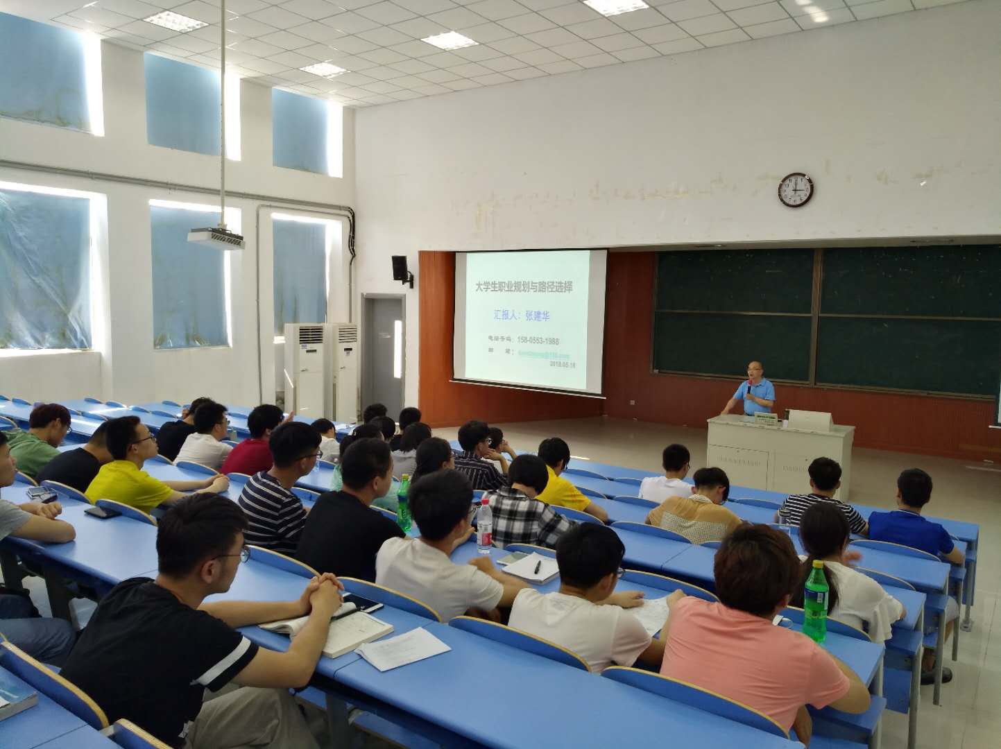 为落实“大学生素质养成计划(V2.0)”相关工作要求,进一步丰富大学生综合素质教育形式及内容,由教务处主办、素培中心承办的“素质讲坛”系列讲座第2期(总第2期)主题为“大学生职业规划与路径选择”讲座,于5月16日下午3点在新芜校区A1教学楼W301阶梯教室如期举行。担任本次主讲的张建华老师是安徽师范大学经管学院工商管理中心主任,高级经济师,高级职业指导师,教育厅特聘大学生职业指导专家,国家就业创业指导培训教师(安徽省仅五名),副教授,硕士生导师。(讲座现场)首先,张老师言简意赅地点明本场讲座的目的,希望通过讲解规划职业生涯的目标设定与路径选择的方法,开阔同学们涉及就业择业方面的眼界,启发同学们结合个人情况校准个人大学时光的计划安排,为将来更自信更从容地进入职场打牢基础、做好准备。(张建华老师为师生带来精彩讲座)紧接着,张老师以个人学习和工作经历作为课堂导入,分别介绍了霍兰德职业兴趣理论、MBTI职业性格理论、岗位胜任能力分族、自我管理能力等多项自我认知的管理工具,不仅分析了当前大学生面对