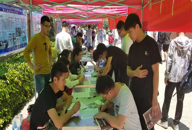 为了进一步推进大学生安全法制教育,大力普及安全知识,切实提高大学生安全防范意识和自我保护能力,减少和避免各类安全事故的发生,进一步降低大学生可防性案件的发案率,5月7日至5月18日,由学校保卫处主办,学校校卫队承办的安徽信息工程学院第一届“安全伴我行”校园安全知识竞赛活动在我校文津校区召开。 此次安全知识竞赛主要内容以大学生消防安全、交通安全、治安安全、人身安全、毒品安全及防传销为主题进行出卷测评,旨在通过检测提高在校大学生安全意识。 为组织好本次安全知识竞赛活动,校卫队成立宣传组、考务组、评卷组等活动小组,组织召开动员宣传大会,并深入各学院统计学生报名参赛情况。有效地保证此次安全知识竞赛人员、时间、场地及效果的落实。(图为活动报名现场) 竞赛活动分初赛、决赛两个阶段。初赛期间,文津校区共计724名学生报名参加,经过评卷排名,共计前150名学生进入决赛,最终计算机与软件工程学院刘晴晴同学在本次竞赛中脱颖而出,荣获第一名;艺术设计学院申晓梅、计算机与软件工程学院周红波、陈