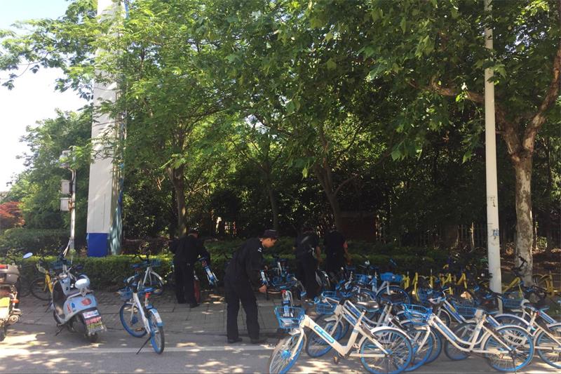 近年来,共享单车的出现,给师生们的出行带来了较大便利,但随着ofo、摩拜等单车企业快速增长,校园外已成为了共享单车的临时停车场,尤其在文津校区南大门及北大,车辆无序停靠、占用车道、堵塞校门等管理问题更是日益突显,共享单车的停放已经严重影响了校园正常秩序。(图为安保人员清理校外共享单车) 保卫处对此高度重视,召开共享单车整治工作协调会,积极寻找对策。一方面,由保卫处联系校内外来单位,加强内部管理,要求遵守校规校纪,规范共享单车停放秩序;另一方面,由保卫处联合警务室、新亚物业安保部对校门外无序停放影响机动车辆进出的共享单车专项整治行动,每天对侵占了车道、安全出口和其他公共区域的共享单车进行清理,并将停放数量过多的共享单车拖运至校园周边的集中停放点。截至目前,已累计清理共享单车1400余辆。(图为整治后共享单车有序停放) 下一步,保卫处将对共享单车进行持续常态化管理,营造良好的校园交通秩序。同时,保卫处也呼吁广大师生们在享受共享单车“便利”的同时,不要忘了“守法”,还车时请将单车停放在