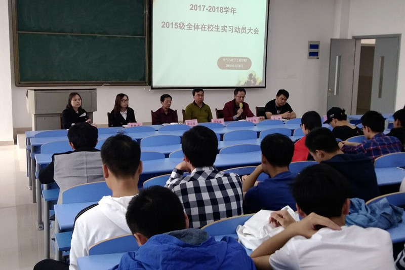 为积极推进实习工作全面展开,2018年5月7日,安徽信息工程学院机械工程学院2015级实习动员会于新芜校区A1N102顺利召开,机械工程学院柴阜桐主任、柴知章副主任以及主任助理陈一兵老师到场出席。会上,首先由柴知章副主任作动员讲话,以“勤、细、严、敬、警、优、诚、淡”的八字箴言为切口,对学生提出要求,“勤”是要在实习单位积极勤奋,踏实做事;“细”是对工作细心谨慎,细致周全;“严”是严格要求自我,保持严谨态度……随后,柴阜桐主任在讲话中强调了实习工作意义、实习中的学习方法、吃苦耐劳精神及岗位中的角色转变问题,并重点提出了实习纪律、安全工作及遵纪守法等注意事项;并鼓励同学们实习期间要秉持严谨踏实态度,不断完善自身提高自我,力争做最优秀的实习生,展现当代大学生的良好风貌。主任助理陈一兵老师以切身企业工作经历,引导学生理论与实践相结合并提出要求。辅导员王淼昕老师和李小亮老师就严明实习纪律、规范实习纪律、规范实习管理及确保安生生产等四个方面做详细解答。窗体顶端各专业学生专业实习和教育实习提出具体要