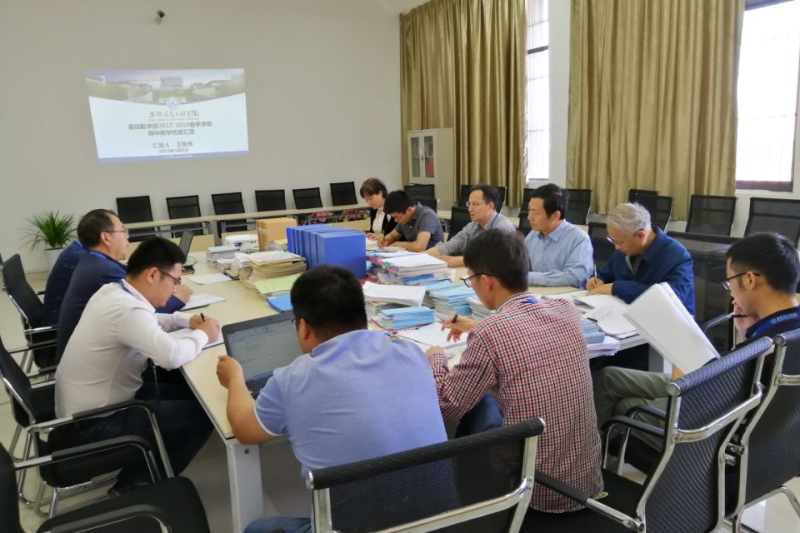 本网讯 为进一步加强教学规范管理,提高教学质量,全面掌握教学工作现状,及时发现和解决教学工作中存在的问题,5月9日上午陈跃东副校长协教务处副处长孙辉、处长助理程玉林、教学主管孙怡川以及教学质量处处长姜宪明、教学督导方正华、潘安莅临基础教学部开展期中教学检查。出席会议的还有基础教学部主任刘树德、副主任王艳伟、党委副书记张爱兵及部分骨干教师代表。会议开始,王艳伟主任就基础教学部春季学期的教学基本情况做详细汇报,梳理了我部的基本教学状况展现了本学期已取得的教学成果,同时也说明了目前教学中遇到的问题。(基础教学部汇报教学情况)各位领导听取汇报后,对备查材料进行了系统的检查,包括教师作业的批阅、教案的撰写、各项教学材料的归档规范等。检查过后,陈跃东副校长对我部教学材料的完备性、规范性及所取得的成绩表示肯定,但也提出了部分存在的问题,如毕业班课程的设置、教师试卷成绩的批阅等。此外姜宪明处长也将我部教学督导听课的情况做了反馈,对思政兼课教师和数学外聘教师存在的问题做了详细的说明。最后,教务处孙辉等