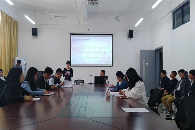 为增强大学生创新、创意、创造、创业的意识和能力,推动大学生创新创业教育的蓬勃发展,积极备战我院2018年“创青春”大学生创业大赛,我系于4月18日14:00在新芜校区A4教学楼S304会议室举办了“创青春”大学生创业大赛系部选拔赛,本次比赛邀请到信息工程系团总支书记华静、辅导员王娜、陈欣、田婷婷、汪保国、余欢欢担任评委。