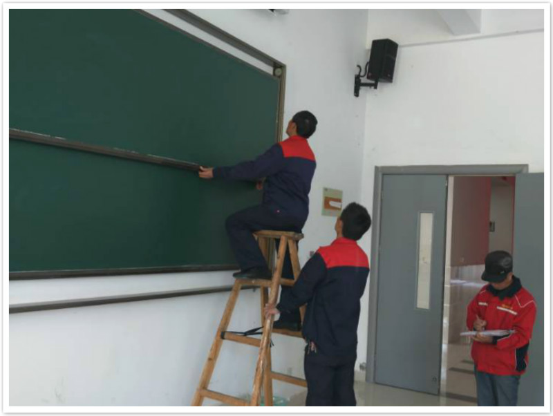 本网讯 为保障教学设施完好和教学工作的顺利进行,近日,新芜校区昭阳物业维修部按照后勤维修工作“扫帚不到,灰尘不掉,维修不能等靠要”的要求,着手对A1、A2、A3、A4教学楼、求是楼及A8实训楼开展教学设施专项检修工作。清明节三天假日,维修部三位师傅对教学区200多间教室的课桌椅、开关、日光灯、窗帘、黑板的使用状况进行了问题排查、统计,并进行了集中维修。同时,随着春季气温变暖,教室里被“冷落”了一个秋冬的吊扇即将启用,为保障师生安全,消除隐患,维修部对107间教室的吊扇进行了全面细致地隐患检查,大到机头,小到扇页、螺丝钉,不放过任何一个细小问题,并对存在隐患的吊扇进行加固、修理。为不影响正常教学秩序,统一维修工作都是集中在中午、周末等休息时间,维修部师傅克服人手少、时间紧、任务重的困难,在巡检与检修过程中充分发挥了尽心尽力服务师生、服务教学的工作精神,保障了一线教学的顺利开展。(维修师傅正在检修教室黑板)(维修师傅正在细致检查教室电风扇运转情况)(维修师傅正在检查课桌椅完好情况)(文/图