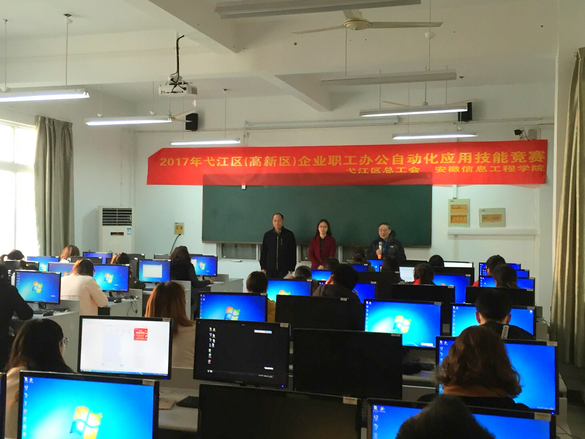 12月12日,受弋江区总工会委托,计算机与软件工程系在文津校区顺利承办了弋江区(高新区)企业职工办公自动化应用技能竞赛。来自全区各企业单位共计40余名职工报名参加此次竞赛。弋江区区长伍臻、弋江区总工会主席吴...