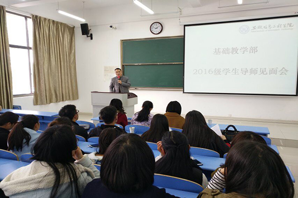 2017年3月15日于A1N106教室基础教学部成功地召开2016级学生导师见面会。本次大会由学工秘书张爱兵主持,教学秘书钟家伟、教务员姚星星及16级指导老师参加了本次大会。大会伊始,张爱兵老师上台致辞,依次介绍出席本...