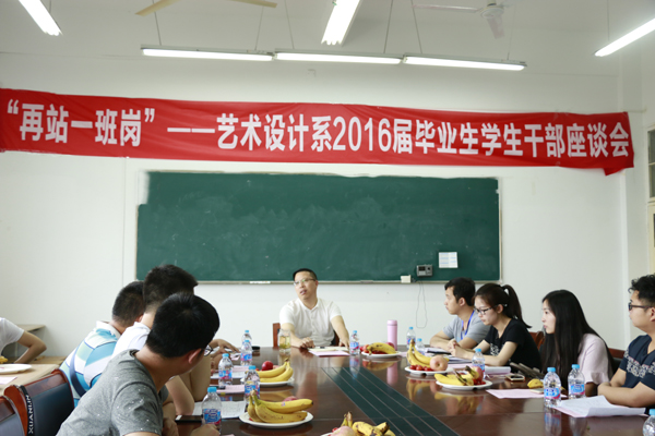 6月20日下午,艺术设计系“再站一班岗”——2016届毕业学生干部代表座谈会在系会议室举行。出席座谈会的有艺术设计系主任王淮梁、副主任周建、学工秘书叶克军、毕业班辅导员金亮、何寅曦老师及毕业班学生干部代表。...