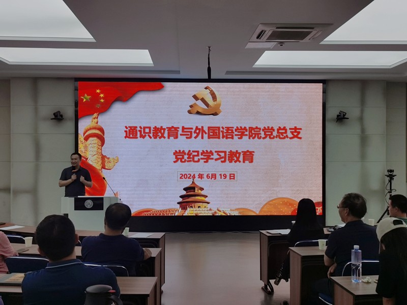 为深入推进党纪学习教育走深走实,6月19日下午,通识教育与外国语学院党总支在A3博学楼W301教室开展警示教育大会暨《中国共产党纪律处分条例》专题辅导报告会,学院党总支书记孙立作《中国共产党纪律处分条例》辅导解读,党总支、各支部全体委员、全体教职工党员参加会议。(图为报告会现场)孙立深入讲解了《中国共产党纪律处分条例》修订的重要意义、主旨要义和主要内容,并通过剖析违纪违法典型案件,深刻解读违纪的主客观因素,把问题、原因、危害、教训启示等讲准讲深讲透,以案说德、以案说纪、以案说法、以案说责,引导全体教职工自省自律,使铁的纪律内化于心、外化于行。(图为孙立作解读)会上,全体党员逐字逐句学习了各项条款。自4月党纪学习教育开展以来,支部党员通过每日自学和党课集中学习,深刻领会《条例》的修订内容及深意,持续深学笃行《条例》,将其与学习贯彻习近平总书记关于党的建设、党的自我革命的重要论述,以及党章党规紧密结合,以工作的高质量成果检验党纪学习教育的实际成效。(图为各支部观看警示教育片和自主学习)下一步