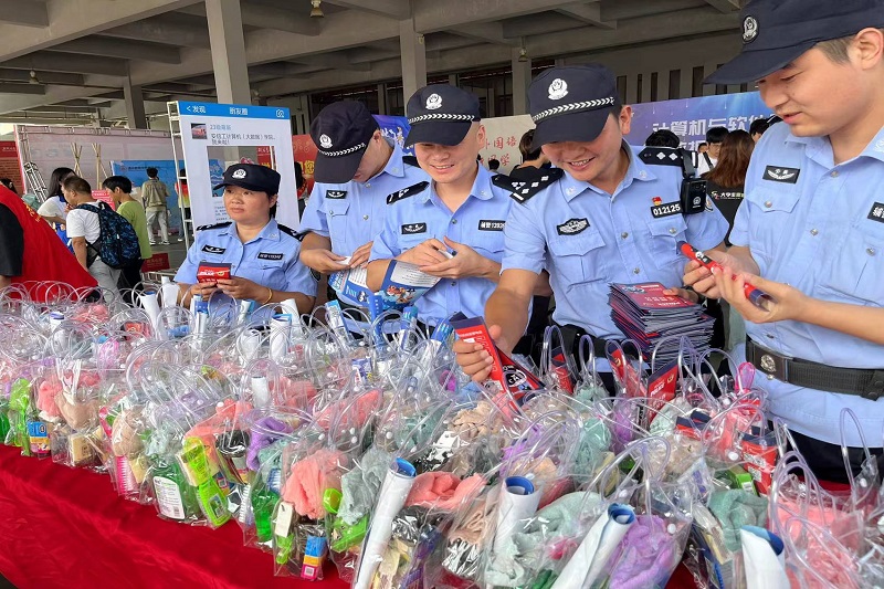 为进一步提升广大新生群体对电信网络诈骗的辨别能力和防范意识,深化防范电信网络诈骗各项举措。新生报到期间,学校保卫处联合东湖派出所开展“关注网络安全,谨防电信诈骗”为主题的反诈宣传活动,将电信网络诈骗防范知识送到学生身边,守好同学们的“钱袋子”,筑牢反诈“防火墙”。 宣传活动中,学校保卫处、公安民警分组深入到学生报到点、学生寝室开展反诈知识宣传,发放宣传资料,并推广安装国家反诈中心APP。坚持“公安宣传+师生宣传”、“线上宣传+线下宣传”、“广度宣传+深度宣传”相结合,不断提升安全校园反电诈宣传精准度和覆盖面,切实构建起校园反电诈宣传立体态势,让反诈常识入眼、入心、入脑。(图为公安民警将宣传材料装入新生礼品袋)(图为新生报到点反诈宣传) “凡是要你向陌生人转款的都是诈骗”,“一顿操作猛如虎,亏得只剩两毛五!”活动现场,公安民警以当下学生群体喜闻乐见的方式,通过诙谐幽默的语言,结合辖区实际电诈案件特点,向广大新生及家长讲解电信网络诈骗典型案例,以案释法,用图文并茂、通俗易懂的方式为新