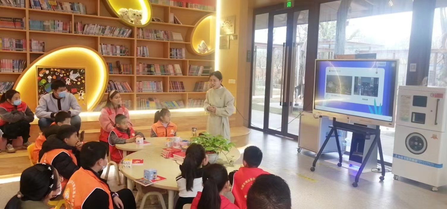 本网讯为推动“一支部一品牌”活动走深走实,发挥基层组织的宣传作用,11月13日,通识教育与外国语学院教职工第二党支部(以下简称:第二党支部)与芜湖市湾沚区向日葵志愿者协会以“书香沁童年,宣讲红色故事,传递党二十大精神”为主题,在芜湖书房·49号书房共同举办读书分享会。本次活动由第二党支部代表、向日葵志愿者协会志愿者、各小学的书友们共同参与,总计30余人。本次读书分享会邀请了第二党支部的郁从娟老师与各位书友共同分享“毛泽东同志的求学之路”。 (郁从娟老师分享故事)在分享过程中,郁从娟老师以“饱读诗书恰少年”、“远赴长沙为求学”为主要内容,细致地阐述了毛泽东同志在韶山私塾、东山高小学堂、长沙第一师范求学的故事。故事生动再现了毛泽东同志如何将个人理想融入民族独立、人民解放的历史进程,彰显了毛泽东同志的家国情怀和宏伟抱负。在最后,郁从娟老师号召书友们要以毛泽东同志为榜样,追求崇高理想、坚定信念、厚植爱国精神,将个人梦想的实现融进实现中华民族伟大复兴中国梦的新征程中。 (郁从娟老师与学生互动)活动