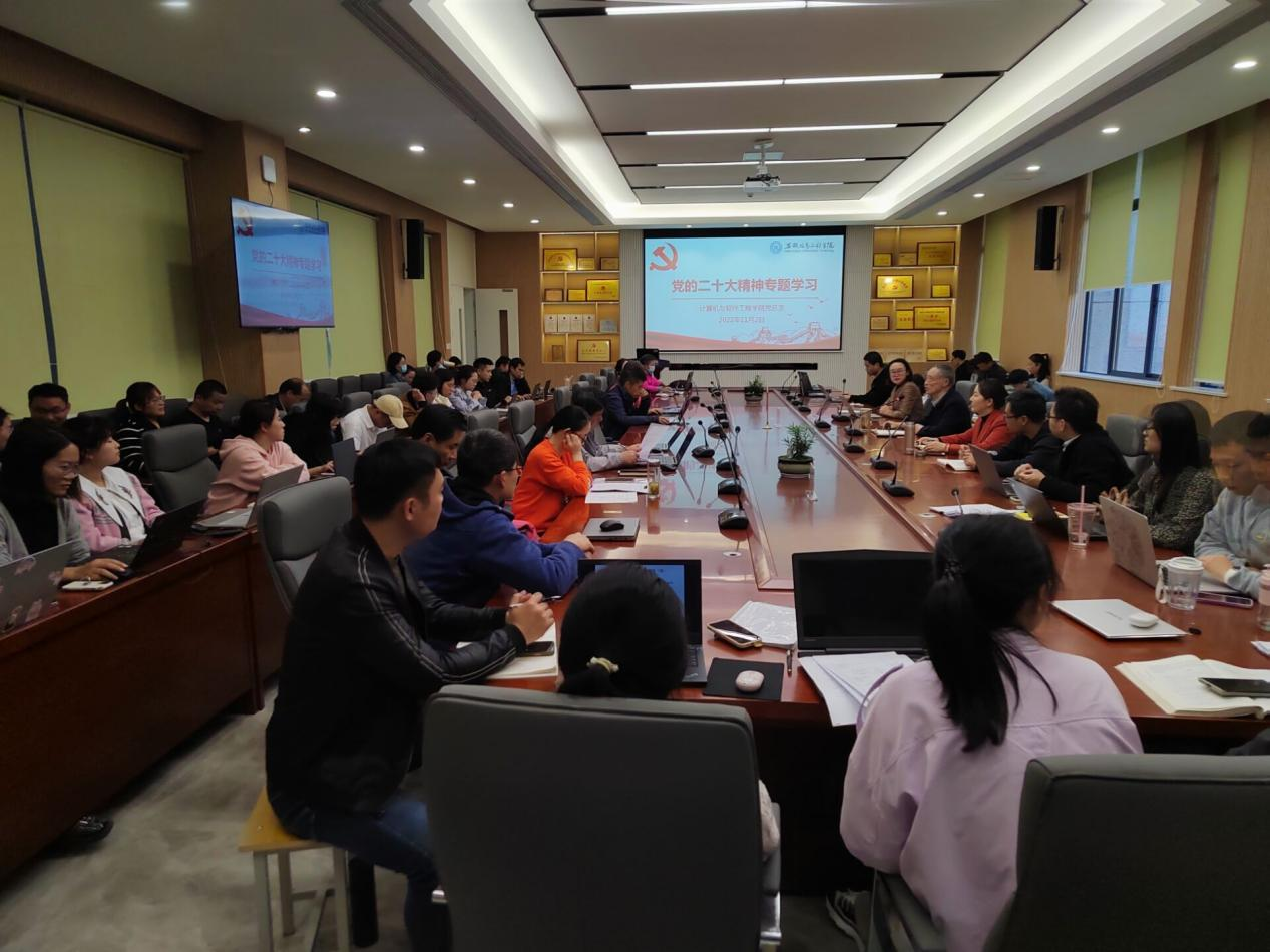 11月2日,计算机(大数据)学院组织开展党的二十大精神专题学习。会议由党总支书记周鸣争主持,全体教职工参会。(图为会议现场)周鸣争指出党的二十大报告规划的蓝图令人激动和期待,全国人民将在中国共产党的强力领导下立足新发展阶段,践行新发展理念,构建新发展格局,以高质量发展、高水平生活、高效能治理的更大成绩,为人民谋幸福,为民族谋复兴,为世界谋大同。 (图为周鸣争发言)周鸣争强调全院上下要在学习贯彻党的二十大精神上聚力奋进,用心学进去,用功领会透,用力做起来,切实学懂弄通做实习近平新时代中国特色社会主义思想的世界观和方法论。要在推动完成年度工作任务上聚力奋进,奋力推动学院高质量发展,奋力落实立德树人根本任务,奋力提升人才培养能力,奋力增强学院文化归属感和软实力,奋力推动学院内涵发展,奋力维护学院师生安全稳定。要在深入推进全面从严治党上聚力奋进,更加自觉学习党章、遵守党章、贯彻党章、维护党章,一以贯之落实新时代党的建设总要求,强化党组织的政治功能和组织功能,营造风清气正的政治生态。要在坚持团结奋