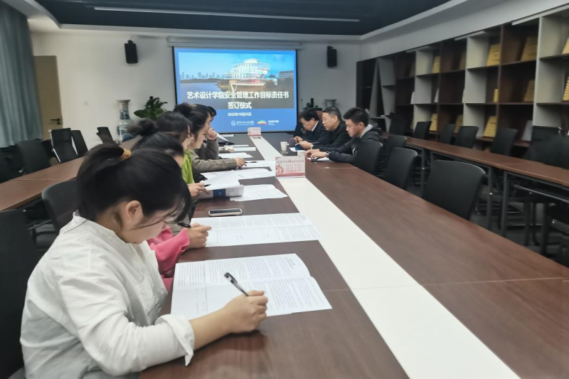 为加强学校安全管理工作,抓好校园安全工作,明确安全工作责任,全面筑牢学生安全管理工作思想防线,10月25日下午,保卫处联合艺术设计学院在艺术楼会议室举行2022年度安全管理工作目标责任书签订仪式。保卫处处长张祥、处长助理王竹、艺术设计学院执行院长袁立庠、院长助理金亮以及全体辅导员参加活动。(图为签订仪式现场) 会议上,王竹首先将艺术设计学院2022年安全工作受理情况做了详细介绍,并提出希望冲在学生工作一线的辅导员们能成为学生安全管理工作的第一道防线,关注学生动态,迅速及时反应。张祥更是深切关心学生,嘱托辅导员们要在班级积极宣传安全知识,关心学生生活,筑起学生安全屏障,保障学生的生命健康安全。(图为介绍2022年安全工作开展情况) 袁立庠对本学期安全工作作出部署,他希望全体辅导员能按照全方位、全覆盖、全要素的要求和本学期安全工作计划表,落实学校安全稳定工作。辅导员们要高度重视,牢固树立安全意识,层层抓好落实,做到防患于未然,坚决杜绝安全事故的发生;要坚守安全红线,将学生的政治安全、