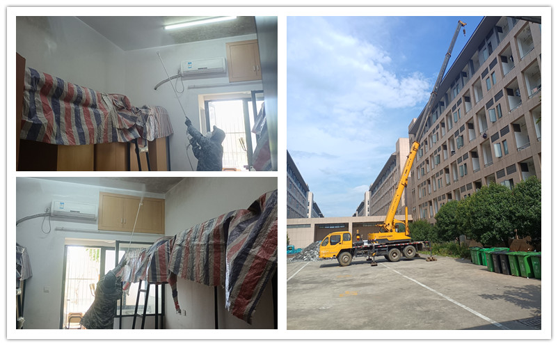 本网讯 宿舍是学生生活、学习和休息的重要场所,满足学生共性和个性的需求是学校的出发点和落脚点。为切实改善我校学生住宿条件,努力打造更加安全、整洁、舒心的学习生活环境,后勤管理处利用暑期全面启动学生宿舍维修出新工作,在开学之际,以崭新的面貌迎接来自天南海北的莘莘学子。本次维修出新工作涉及9栋学生公寓,共886间寝室,维修内容包含水电、门窗、粉刷墙体、家具、五金件、吊顶、地砖、防水等多方面。为进一步提高维修工作效率,后勤管理处多次组织工作布置和动员协调会,对暑假维修改造工作进行详细部署,明确责任及要求,要求施工单位制定合理的施工进度表,落实责任人,全力以赴做好暑期各项维修工作,确保所有维修出新项目(含现场的清理)务必于开学前全部完工。(维修出新中的学生宿舍)此次暑期学生宿舍维修出新工作保质保量圆满如期完成,顺利保障了学生开学,为学生提供了一个良好舒适的住宿环境。
