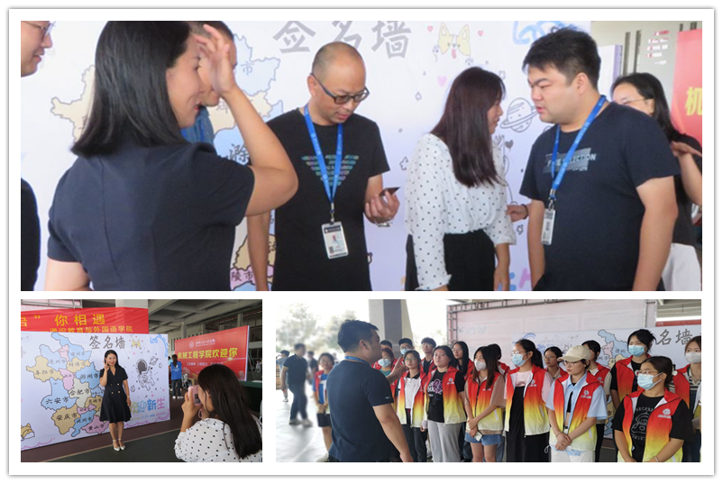 本网讯 丹桂飘香,秋风送爽,又是一年迎新时。2022年9月3日,通识教育与外国语学院迎来了2023级的萌新们,学院的迎新工作在徐徐晨风中拉开帷幕。学院部署,整装待发为确保迎新工作顺利进行,学院提前一周部署计划,征集迎新志愿者,成立了引导、报到、宣传以及机动四个工作小组,分布在校门口和新生报到点,学院领导班子提前视察并指导迎新工作的准备情况。图1-学院领导在迎新现场各方配合,有序进行在新生辅导员以及志愿者的全力配合下,迎新工作有条不紊的进行着。引导组负责在校门迎接新生至报到点;报到组负责协助辅导员办理报到手续并将新生送上校内摆渡车;机动组负责为新生搬行李,宣传组负责记录萌新们第一天到大学既懵懂又憧憬的模样,并在签名墙上留下他们专属的照片和记忆。学长学姐热情周到的服务很快消除了新生们初进校园的陌生感,让他们更快融入到通识教育与外国语学院大家庭。图2-各小组志愿者各司其职萌新报到,畅谈未来来自英语2203班的王婉莹是第一个来报到点的新生,站在迎新签名墙前,她感慨:“作为一名大一新生,我对学校的