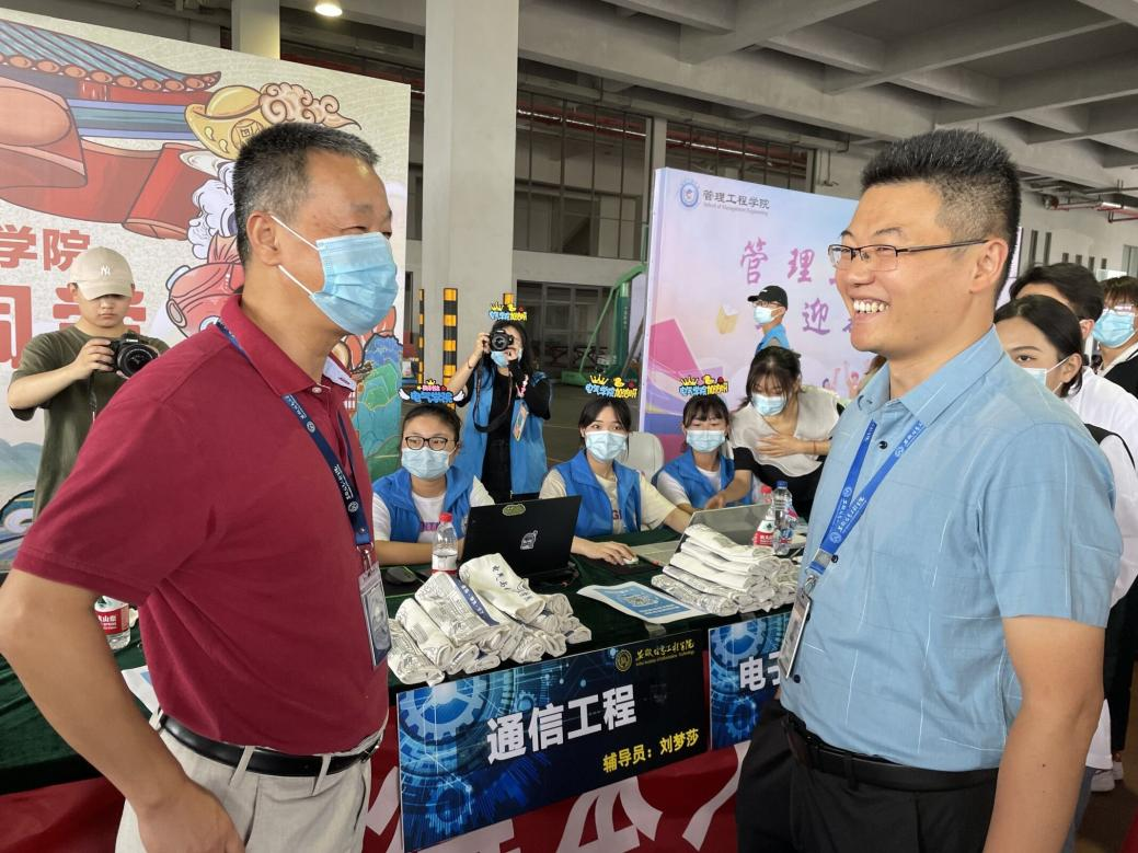 飒爽金秋日,澎湃逐梦时。又是一年迎新季,校园里到处洋溢着快乐的笑容和青春的面庞。9月2日上午8时电气与电子工程学院2022级新生如期而至,一张张热情的笑脸,一句句亲切的问候,一项项贴心的服务,欢迎着来自各地的莘莘学子。电院新生们即将在这里开启崭新的大学生活,迎接人生新征程,追逐人生新梦想。(图为电院迎新点)9月2日,在电气与电子工程学院副院长陈振和学院相关老师及各新生辅导员的现场指导下,学生志愿者迎新生服务工作有条不紊的进行中。依照迎新流程采集个人照片,完善个人信息,进行开学合影留念,所有事项有条不紊的进行中。志愿者们个个面带微笑,热情似火,帮新生搬运行李、在报到处与宿舍间不断往返以确保迎新生工作的顺利进行。9月3日,为给迎新添加别样色彩,让新生感受到来自电气学院的人文关怀,吴敏校长、章敏凤副校长、电气与电子工程学院院长马利祥特为9月3日出生的新生,送上生日蛋糕和生日祝福,并进行合影记录下这一人生特殊时刻。(图为吴敏校长来到电院迎新点)(图为陈振来到迎新点查看迎新情况)(图为学院领导为过