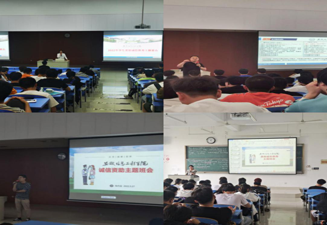 为了提升学生的诚信意识,了解国家及学校资助政策,引导学生树立诚信观念,计算机(大数据)学院近期开展2022年学生资助诚信教育主题月系列活动。 主题班会 专项教育本次诚信教育主题班会包括资助诚信、学术诚信、考风诚信、学习诚信四个方面。首先辅导员介绍了国家及校内的资助政策,介绍了征信及信用知识,强调了学生应树立资助诚信意识。其次,辅导员强调同学们应遵守考风考纪,诚信应考。接着,辅导员强调学生应树立学术诚信意识,坚决抵制学术不端行为。最后,辅导员强调各位同学严禁迟到、旷课、早退、代课、逃课,应遵守课堂纪律,努力营造优良学风。(图为学院辅导员开展诚信教育主题班会) 诚信签名 承诺有我同时,学院组织了以“诚实守信,学会感恩,勇担责任,志存高远”为主题的诚信教育签名活动,旨在引导同学们走诚信之道,做诚信之人,处诚信之事。(图为诚信教育签名活动) 诚信宣誓,人人参与随后,辅导员带领同学们进行了诚信宣誓,举起的右拳是坚定的信念。“我宣誓,我愿做一名诚实守信的学生,坚持诚信立身、诚信立学、诚信立言、诚信立