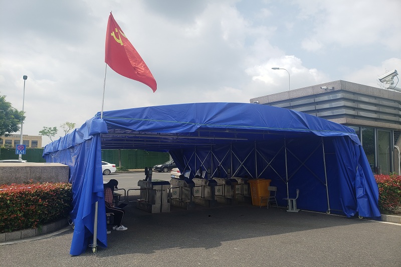 当前,天气逐渐炎热,雨水天气增多,为进一步做好疫情防控期间校园安全管理,在校防疫办的大力支持下,紧急采购防疫帐篷助力校园疫情防控。 学校安保人员及教职工志愿者队伍是校园疫情防控第一道防线,在校门口露天检查点风吹雨淋日晒值守,原先简易帐篷已无法满足值班使用需求,防疫帐篷成为一线执勤人员迫切需要的基础物资之一。对此,校防疫办助力防疫帐篷,紧急对接资产管理处采购,解决原先帐篷损坏率高、无法长期固定、雨天漏雨等问题,保障门岗正常执勤查验,提供优质工作环境。 5月23日,保卫处协助供应商进行安装,分别在校东门、南门完成帐篷搭建工作,该帐篷将助力防疫工作一线,用于师生返校排队等候、来访人员入校信息查验,为执勤人员遮风挡雨。近期,天气逐渐炎热,结合当前疫情防控形势,此次帐篷的采购安装解决了燃眉之急,支起了守护师生安全的“保护伞”。疫情无情人有情,帐篷虽小暖人心,校防疫办助力校园疫情防控搭建起校门前沿的“暖心房”,共筑坚实防线。 后续,保卫处也将继续加强校门管理,做好人员进出查验,保障师生生命