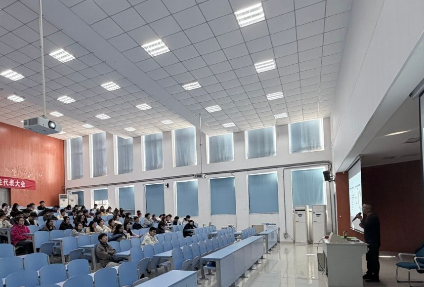 本网讯 逐梦青春跟党走,砥砺奋进建新功。11月12日,管理工程学院在博行楼E202召开第九次学生代表大会,学院党总支副书记韩海东、党务秘书卫雨婷、团总支书记陈效晨、辅导员黄玲玲出席会议,全体学生代表、学生委员会成员参加大会。大会在庄严的国歌声中拉开帷幕。韩海东代表学院党总支发表致辞,以“聚力、担当、致远”三个关键词为核心,向全体学生代表及全院青年寄予殷切期望。他强调,新时代青年的成长始终与国家发展同频、与学院建设共振,同学们的积极参与是学院高质量发展的不竭动力,更是凝聚育人合力的关键支撑。韩海东指出,青春的担当不仅是立足校园的责任践行,更是面向时代的使命承接。他希望同学们以理想为帆、以实干为桨,将个人成长融入学院发展大局,在学风建设、校园文化、社会实践等领域勇挑重担,以青春之我、奋斗之我为学院发展注入鲜活动能。他鼓励全体同学以此次学代会为契机,厚植家国情怀、锤炼过硬本领,在追求卓越中诠释青春价值,在携手共进中书写学院发展新篇章,让青春在奉献中焕发光彩。(图为韩海东讲话)随后,学生代表董传