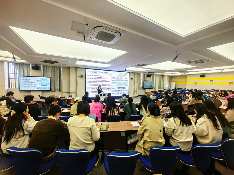 本网讯 为全面提升辅导员队伍专业化、职业化建设水平,11月13日上午,学生处(团委)在A3W301教室举办第44期辅导员工作坊活动。本期活动聚焦“辅导员工作室品牌建设与个人职业发展”,邀请安徽农业大学农学院彭琼琼副教授担任主讲。学生处副处长叶克军主持讲座,各学院分管学生工作的中层领导、学工秘书及全体辅导员参会。(讲座现场)彭琼琼从“服务国家战略、对接育人需求”的高度,系统阐述了辅导员工作室品牌的建设逻辑与路径。她强调,品牌建设须紧扣党和国家政策导向,立足学校特色,并以其安徽省辅导员名师工作室“耕读教育”为例,生动展示了如何将“三全育人”“五育并举”融入思想引领、党团建设等多维度,形成“理论-实践-研究”的闭环。在辅导员个人职业发展方面,她结合自身获评“安徽省最美高校辅导员”等荣誉的经历,指出辅导员应以“政治素养为魂、业务能力为基”,主动对标学生“人生导师”与“知心朋友”的角色定位。她鼓励在场辅导员把握“十五五”规划开局契机,实现个人价值与育人使命的同频共振。此次辅导员工作坊活动既是推进辅