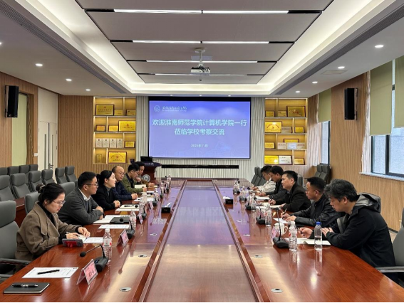 本网讯 为进一步加强校际交流,拓宽工作思路。11月14日,淮南师范学院计算机学院党委书记童悦一行来我校计算机与软件工程学院(大数据与人工智能学院)考察交流。学院党总支书记、副院长戴平,副院长朱洪军、夏林及相关工作人员热情接待了来访团队,双方围绕专业建设、人才培养等议题进行了深入交流。(图为交流会现场)来访团队实地参观了双创实验室、产业学院、工业互联网实验室、软件工程技术中心以及校企联合实验室等实践教学场所,对学院的实验设施和浓厚的产教融合氛围给予了高度评价。(图为参观现场)在交流座谈会上,戴平对童悦一行的到来表示欢迎,并详细介绍了学院的发展历程、人才培养的关键举措、专业学科布局以及未来的申硕规划。童悦也分享了淮南师范学院计算机学院在师资队伍建设、专业培养特色与发展规划方面的经验。在自由交流环节,双方围绕学科内涵建设、课程体系改革、师资队伍建设、实验室管理等核心议题展开了热烈而深入的探讨。尤其就“如何深化产教融合以提升学生就业竞争力”及“导师制在应用型人才培养中的实践”等共同关心的问题交换