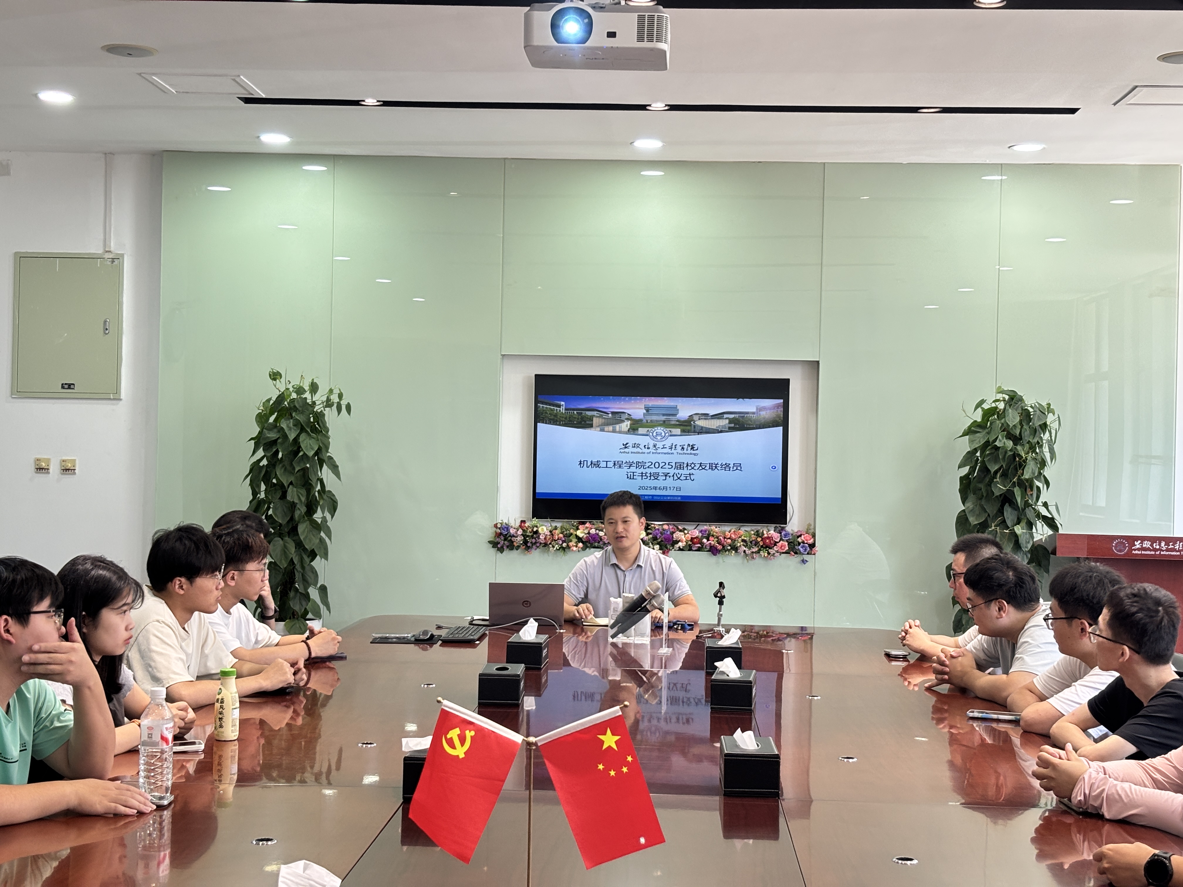 本网讯 为加强校友联络工作,增进学院与校友之间的情感纽带,6月17日下午,机械工程学院在求是楼二楼会议室举行2025届校友联络员证书授予仪式。学院党总支副书记韩海东出席仪式并发表讲话,2025届校友联络员代表及辅导员参加了此次活动。仪式由韩海东主持。(图为韩海东主持)仪式上,韩海东首先对当选为校友联络员的同学们表示祝贺,并对他们未来的工作提出了殷切期望。他强调,校友联络员是学院与校友之间沟通的桥梁,肩负着传递母校关怀、凝聚校友力量的重要责任。他希望联络员们能够以高度的责任感和使命感,积极搭建校友与学院之间的互动平台,促进资源共享与合作发展。同时,他也寄语同学们在未来的工作和生活中能够安安心心做事,踏踏实实做人,为母校争光添彩。在热烈的掌声中,各班级辅导员为2025届校友联络员逐一颁发聘书,并合影留念。仪式结束后,校友联络员们纷纷表示,将不负学院重托,认真履行职责,为校友工作的开展贡献自己的力量。(图为校友联络员合影)此次校友联络员证书授予仪式的成功举办,不仅进一步强化了校友联络机制,也为