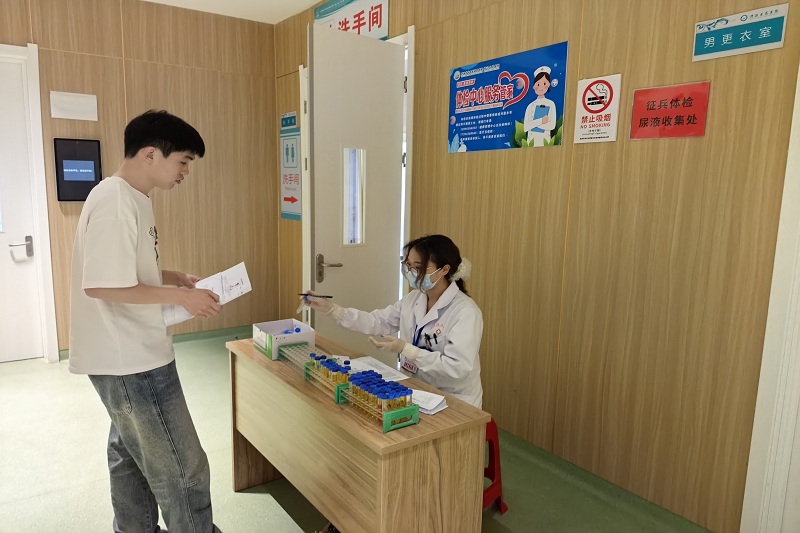 为全面做好2025年下半年征兵工作,6月17日,学校党委武装部在湾沚区征兵办公的统一部署下,组织应征大学生开展第一批次征兵体检。 此次征兵体检工作,武装部安排专人负责。学校共有47人参加,其中毕业生24人,大三学生23人。根据区征兵办的安排,主要进行外科、内科、辅助检查和心理测试。学校武装部全程落实交通、就餐及住宿保障,确保应征大学生保持良好精神状态。从目前掌握情况看,下半年第一批次体检情况较好,合格率较上年同期有较大提升。后续,武装部将结合体检结果,有针对性安排体检反馈、指导检查及身体复检工作,为每一名参加体检的同学做好政策解读和其他各项保障。(图为体检现场)