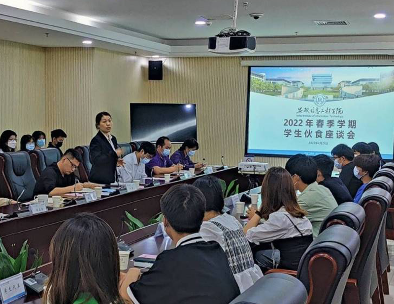 为进一步了解师生伙食需求,4月27日后勤管理处组织2021-2022学年春季学期师生伙食工作座谈会。后勤管理处副处长汪涛、膳食商超监督管理中心主管郑晶晶及相关负责老师,各餐饮单位负责人、师生代表出席本次会议,本次会议由汪涛主持。座谈会上,我校蜀王优芙得餐厅、华工餐厅、亿诚耘耕餐厅、玉兔餐厅现场经理就新学期餐厅在供餐保障、服务亮点等方面的工作开展情况及未来提升方案作专题汇报。随后,师生代表紧密围绕校园伙食服务工作展开讨论,主要涉及南北方饮食差异、个性化就餐需求、早点花样、餐用具卫生、打包台设置、荤菜新鲜度、教职工刷卡就餐方式等诸多师生关心、关注的话题。各餐厅现场经理认真做了记录并给予现场解答,现场气氛热烈。(图为座谈会现场)此次座谈会,加强了餐饮服务单位与师生的联系和交流,明确了下阶段学校伙食工作的提升方向。下一步,后勤管理处将继续深化管理与落实,对标做好校园伙食服务工作。