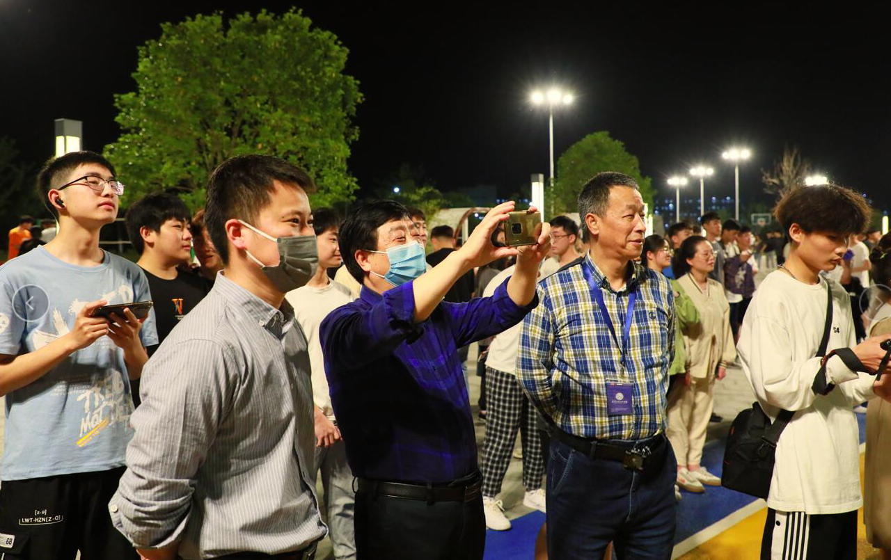 本网讯 为庆祝中国共青团成立100周年,进一步激发爱国、爱党、爱团、爱校情怀,同时为丰富学生的文化生活,培育艺术素养和文明礼仪,保持学生身心健康,4月23日晚,机械工程学院在校体育公园举办2022年新生音乐舞会。校长吴敏、副校长葛付才、院长助理樊钒和部分在校老师到现场观看演出并与学生互动。(音乐舞会现场图)学校体育公园绿茵场上,高旭老师一首悠扬的钢琴曲,为2022年机械工程学院新生音乐舞会谱上了浪漫的前奏,跳动的音符映照天边的晚霞,引来同学们驻足欣赏。琴声渐去,一支活泼轻快的时尚舞蹈拉开了音乐舞会的序幕。起舞弄清影,何似在人间!流行歌曲唱响青春梦想,向每一个年轻的心展示着热爱的力量;古筝、二胡、大鼓、钢琴、小提琴,西洋乐器与民族乐器交织奏响经典主旋律,让赤子之心久久回荡;高贵典雅的礼服,帅气潇洒的西装,举手投足间无不散发着交谊舞者的优雅大方。最后一曲合唱,一支集体舞,为整场舞会画上圆满的句号,传统与现代的碰撞给同学们带来了一场精彩纷呈的视听盛宴。(音乐舞会现场图)同学们戴上口罩,