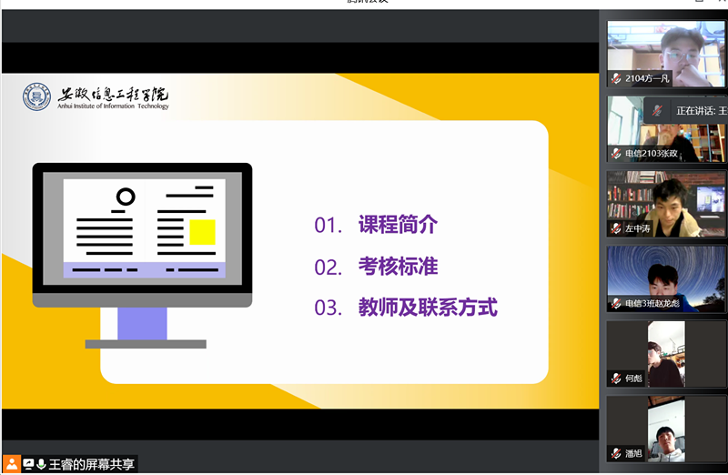 为落实我省高教强省战略,改革高校计算机相关专业人才模式培养,推动物联网应用技术在相关领域的研究,提高我校学生对物联网等高科技领域的知识和素养。科大讯飞AI开发者社区安信工分社(以下简称AI协会)于2022年4月举办了“安徽信息工程学院物联网应用创新大赛校内选拔赛”。此次大赛邀请到物联网创新实验室指导老师何灏、王成栋等担任比赛的评委。(图为校内选拔赛海报)此次活动分为初赛、预决赛和决赛。AI协会分别于4月19日、4月20日和4月22日举办了初赛、预决赛和决赛。初赛共选拔出22支优秀队伍进入预决赛;预决赛中又脱颖而出10支队伍进入了决赛;经过激烈的角逐,最终在决赛中遴选出八份优秀作品,摘得桂冠的作品是“5G+无人机基站的移动网络通信系统”,期待入围队伍在省赛中取得更好的成绩。虽然本次赛事在线上举办,但比赛现场的氛围依旧紧张热烈。(图为选拔赛预赛现场)比赛期间,各支队伍依次进行项目汇报。选手们汇报时展现出来的朝气与自信,将比赛推向了又一个高潮。汇报完成后,评委老师们依据评审标准,秉承着客观、公
