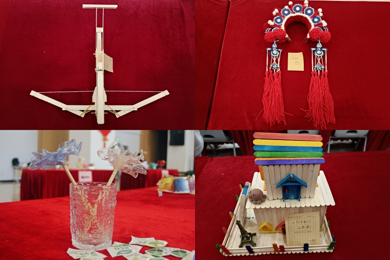 为了展现第二届环艺创作大赛优秀作品的风采,让更多同学了解、学习和传承勤俭节约的雷锋精神。继第二届环艺创作大赛圆满结束后,计算机与软件工程学院(大数据与人工智能学院)于2022年4月8日至4月15日,在博思楼一楼大厅将环艺创作大赛的优秀作品进行展览。在博思楼展厅中,同学们创作的艺术作品布满了整个展位。此次展览的作品内容丰富,品类齐全,既有回收玻璃瓶制作而成的油画作品、木片制成的仿真弓弩、废旧毛线编制的戏冠,还有用雪糕棒做成的红船,可谓专业特色突出,作品构思巧妙,都是同学们利用业余时间精心设计创作的。(图为部分优秀作品)作品展出期间,校长吴敏在学院执行院长周鸣争、副院长戴平、院长助理夏林、学工主管张文竹等老师的陪同下参观了本次环艺作品展,并对此次作品展的举办给予高度评价。学生会志愿者向吴敏介绍了作品参展情况和一些作品的构思、创作过程,吴敏赞扬了同学们的创新精神与动手能力,并表示要用好“雷锋精神”这本深刻、鲜活、生动的思政课教科书,积极倡导废物回收利用与节约资源的良好习惯,利用展览、宣传等多种