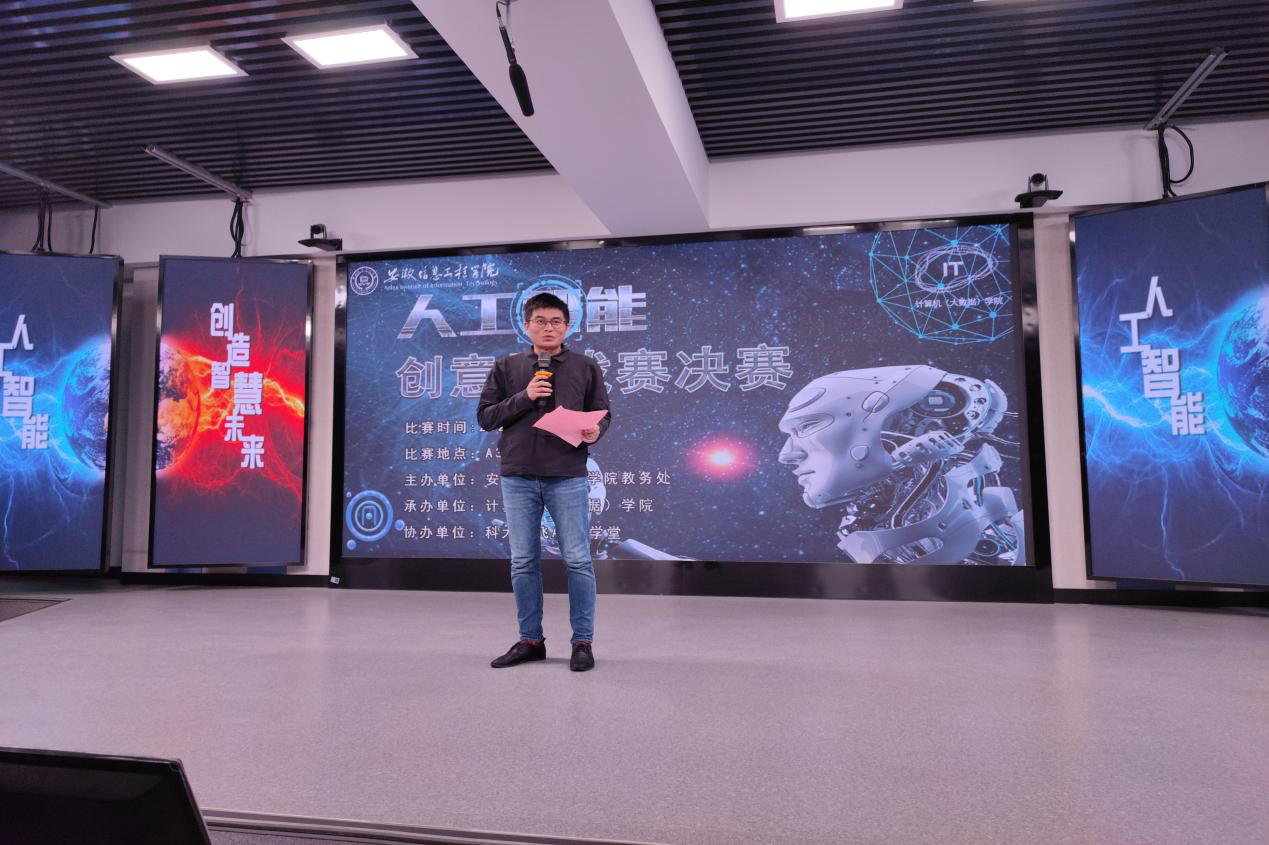 为迎接挑战,适应时代发展的需要,引导高校在校生学习掌握计算机与人工智能相关知识,2022年4月13日下午13时APP创意俱乐部携手科大迅飞AI开发者社区安信工分社于博学楼W401举办第二届人工智能创意挑战赛决赛。决赛分别邀请到了校长助理孙辉、招就处创业指导老师左红娟等几位老师作为此次决赛的评委。(图为孙辉讲话)首先,由孙辉上台发言并宣布比赛开始,第二届人工智能创意挑战赛决赛分为现场汇报与项目答辩两个环节,参加决赛的十一组选手都是过关斩将、突破重围的佼佼者,他们通过现场汇报的形式,介绍各自团队的作品理念、技术核心和服务概念,给在场观众带来一场精彩纷呈的表演。(图为参赛选手进行汇报)选手们所展现出来的朝气与自信、执着追求梦想的毅力与实力更是赢得了在场观众一阵又一阵热烈的掌声,而现场评委精辟独到的点评更是将比赛推向了又一个高潮。 (图为评委老师进行点评)经过激烈的角逐,最终《环城科技——新时代智慧垃圾分类系统》项目脱颖而出,摘得桂冠,荣获本次决赛特等奖及最佳创意奖。观众们热烈的掌声是对他们的