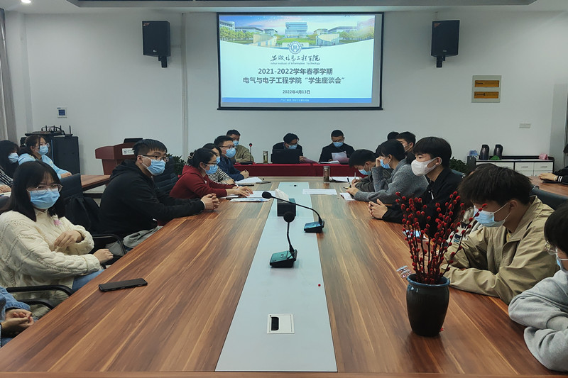 为了切实解决同学们在学习和生活中所遇到的问题,并对当下同学们的思想动态进行调研。2022年4月13日下午2:00,电气与电子工程学院于A4教学楼S403会议室召开春季学期学生座谈会。副院长陈振、副院长马利祥、教学科研秘书徐旺、学工秘书曹栋、全体辅导员及各班级学生代表参加座谈会。(图为学生座谈会)座谈会伊始,陈振指出召开本次座谈会旨在深入了解同学们在有关教学、学风、生活等方面的看法,并希望大家踊跃发言,积极提出有效且具有建设意义的意见。随后,同学们就以上方面轮流发表意见和看法。19级学生提出,因疫情原因大部分同学网课效率不佳,未能和老师进行及时沟通,马利祥院长回应会加强过程考核的方式,督促同学们自主学习;20级学生代表提出目前课程接触的专业课多,有些课程学习起来比较难,老师上课进度比较快,有点跟不上节奏 。针对此种情况,徐旺老师建议学生课堂上及时向授课老师反馈课堂学习情况,课下自己也要多花时间去学习,学院后续也会联系相关的课程的任课老师,要求及时关注学生的问题和课堂授课效果。21级学生提出