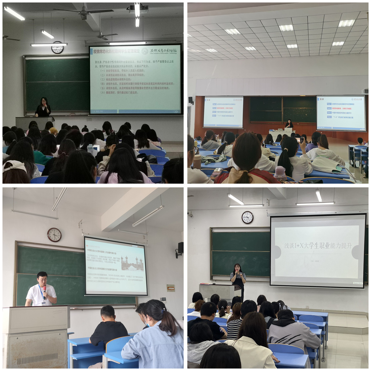 本网讯 结合学校疫情常态化防控期间学生管理要求,并以良好的精神风貌,营造讲文明、懂礼仪、守公德、重风尚的良好氛围迎接学校本科教学合格评估工作,4月10日-12日期间,通识教育与外国语学院各年级陆续开展“疫情防控不放松,文明素质树新风”系列主题教育班会之讲好一堂“思政课”。通过思想政治理论教育,让学生能够在疫情特殊时期更好地去适应校园生活,自觉遵守校园疫情防控各项管理规定、有效地安排好日常学习、生活,提升个人能力及提高精神境界,争做学生楷模。图为各年级开展“思政课”主题教育班会走进“思政课”,主要围绕三大主题进行展开,即:疫情防控“安全课”、素质养成“德育课”、“1+X”职业技能“教育课”。通过强调防疫安全、校园管理,寝室查寝,素质养成、劳动教育,能力提升等方面,让同学们意识到在校期间须遵守校园疫情防控各项管理规定,提升自我防控意识,营造健康安全的校园环境。通过推行养成教育,为学生创设最优的成长环境和平台,全面提升学生的思想道德水平和文明素养,有利于加快学校内涵式发展。 “1+X