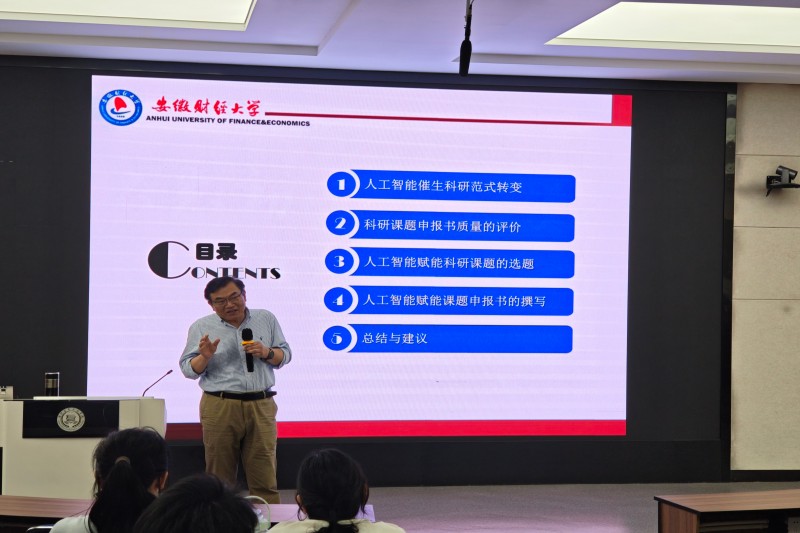6月16日,安徽财经大学周森鑫教授应邀在我校A3W301教室为全体教师带来了一场题为《人工智能赋能科研课题申报书撰写的思考与实践》的精彩讲座。讲座深入剖析了人工智能时代科研范式的变革,并分享AI技术在科研选题、申报书撰写中的实际应用策略,为教师们提供前沿的科研思路与方法。(图为讲座现场)周教授首先指出,人工智能的迅猛发展正在深刻改变传统科研模式。从数据驱动到智能分析,AI技术为科研工作者提供更高效的工具,同时也对课题研究的创新性提出更高要求。他强调,教师应主动适应这一趋势,善用AI技术提升科研效率与质量。针对科研课题申报的关键环节,周教授详细解读高质量申报书的评价维度,包括选题的前沿性、研究逻辑的严谨性、技术路线的可行性等。他结合具体案例,分析了申报书中常见的不足,并给出了优化建议。讲座的核心部分聚焦人工智能如何赋能科研课题的全流程。在选题环节,周教授演示了如何利用AI工具快速梳理研究热点、挖掘创新点;在申报书撰写阶段,他分享如何借助AI辅助文献综述、优化研究框架,甚至智能润色文本,使申